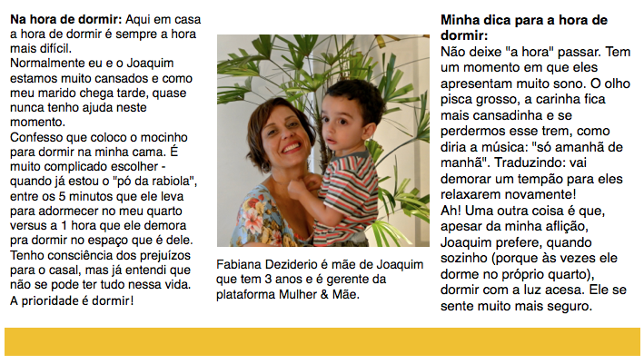 Fomos às “ruas” aqui desse mundo virtual e perguntamos para algumas mães como é a rotina na hora de dormir e qual a dica que eles dão para que esse momento não se transforme em um pesadelo.